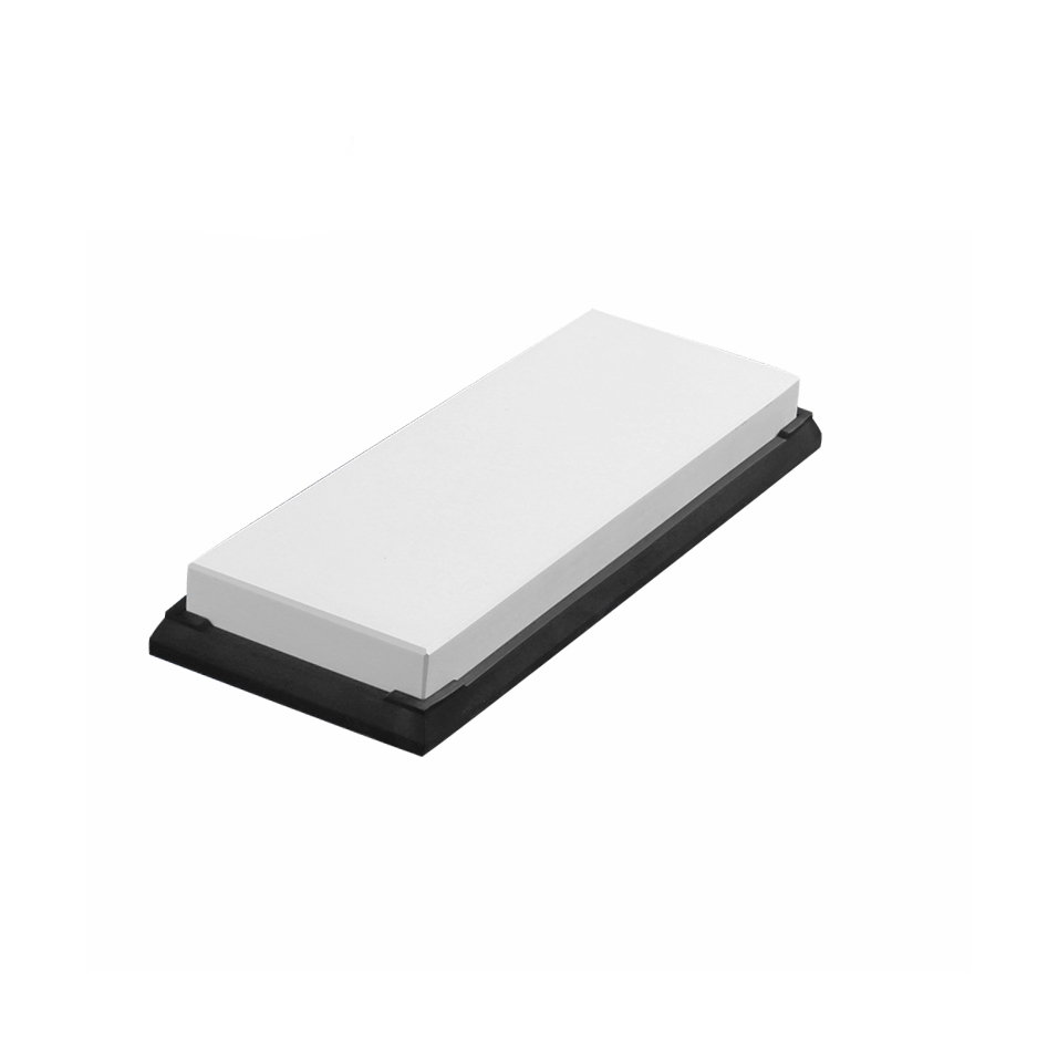 The glass plate has many advantages. It is attached to a tempered glass support and prevents the stone from deforming. The disadvantages of the porosity of ceramic stones, where the grains can fall off more quickly depending on their quality, are a distant memory. Furthermore, with the glass plate, you can use the stone until the end, until you can see through the glass. Even when the abrasive becomes very fine, similar to paper, the stone continues to work effectively.