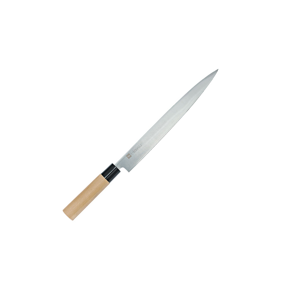 The Haiku carving knife is a larger model than most knives in this category. It is similar to the Japanese sujihiki and is ideal for fine cuts of large pieces of meat such as roasts, legs and carpaccio. It is also suitable for cutting large fruits such as pineapple.